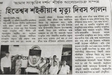 অসমৰ প্ৰাক্তন মুখ্যমন্ত্ৰী প্ৰয়াত হিতেশ্বৰ শইকীয়াদেৱৰ ২৯তম মৃত্যু তিথি উপলক্ষে বক্তৃতানুষ্ঠানঃ